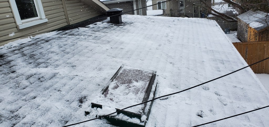 On the other hand, having significant amounts of snow on the glass itself can be problematic. When temperatures are blown freezing point and your thermostat programmed to room temperatures (23 degrees Celsius) it can transfer heat and melt the snow gradually. Over time melting snow accumulate and form an ice dam at the bottom of the skylight. Any additional snow that melts due to heat loss or rain gets trapped behind the ice and leaks into the house.